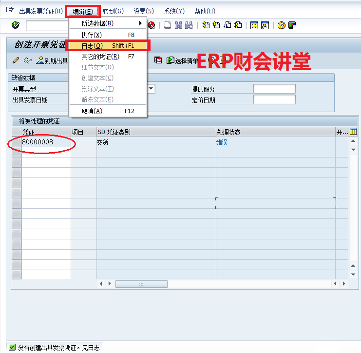 [点晴模切ERP]SAP软件 VF01出具发票的错误分析