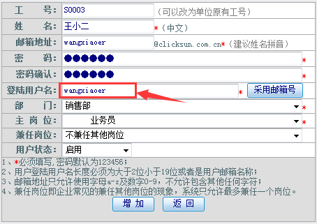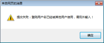 部分用户在新建用户名时会出现“登陆用户名已被其他用户使用,请另外输入”,如下图所示: